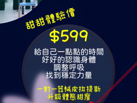 •$599 甜甜體驗價|首次體驗限定,含一對一體態評估與器械練習,適合想初步認識皮拉提斯的你 !!!